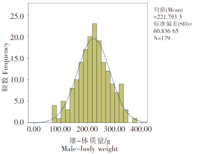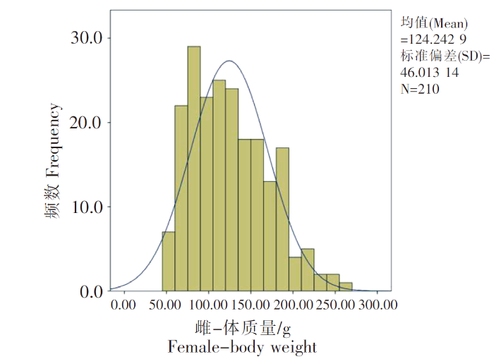 | 家系 Full-sib | 样本数量 Number of samples | 体质量Body weight | 偏度 Skewness | 峰度 Kurtosis | 变异系数/% CV | ||