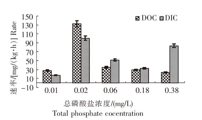 不同总磷酸盐浓度下羊栖菜小苗的DOC分泌速率与DIC固定速率