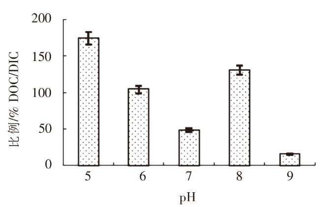 不同pH下羊栖菜小苗的DOC 分泌量占固碳量的比例