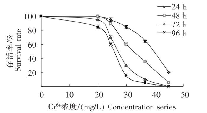 Survival rate of the larva under concentration series of Cr6+