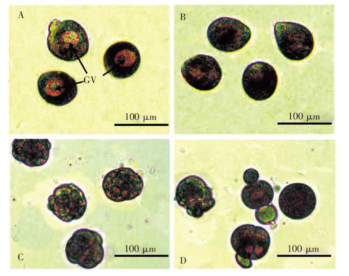 Notes:A.Oocytes with germinal vesicle;B.GVBD of oocytes;C.The normal fertilized egg;D.Malformation.