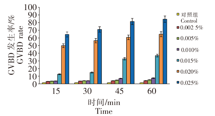 不同浓度氨海水处理对 GVBD 发生率的影响