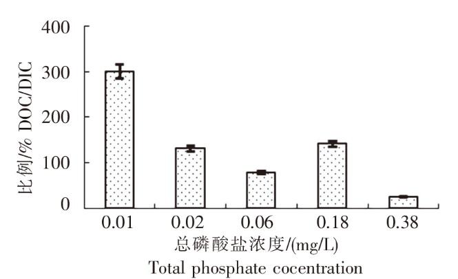 不同总磷酸盐浓度下羊栖菜小苗的DOC分泌量占固碳量的比例