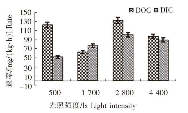 DOC secretion rate and DIC fixation rate of s. fusiform small seedlings under different light intensity