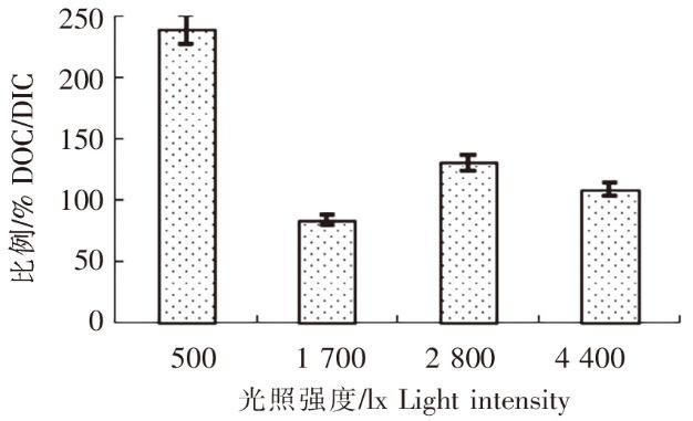 2.2 光照强度对羊栖菜小苗DOC分泌的影响