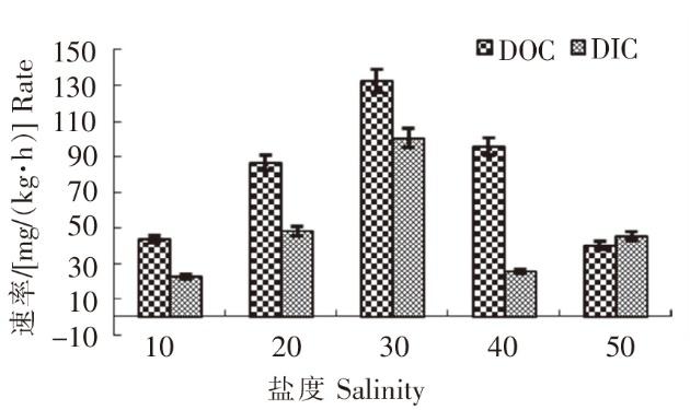 不同盐度下羊栖菜小苗的DOC分泌速率与DIC固定速率