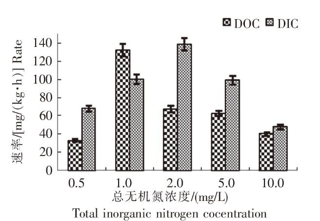 2.5 水体中总无机氮浓度对羊栖菜小苗DOC分泌的影响