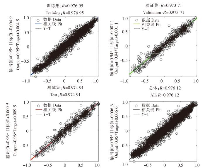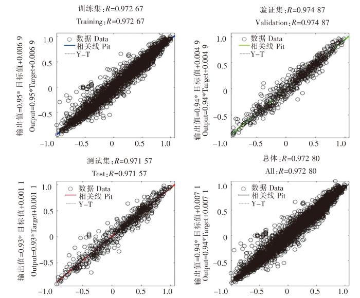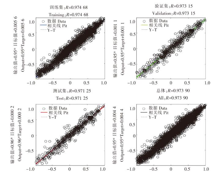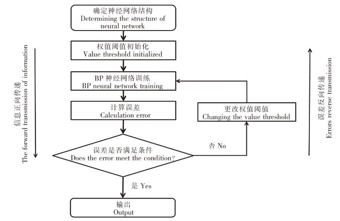 图3显示了BP神经网络训练过程,输入信息从输入层进入后,经过隐含层变换传递到输出层,计算均方误差(MSE)。如果MSE值超过要求,则误差开始反向传递,经过隐含层传向输入层。然后调整输入变量参数再次进行训练,多次训练使MSE达到要求。